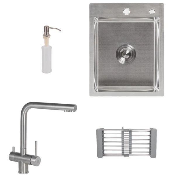 Набір 3 в 1 мийка для кухні інтегрована Lidz Handmade H4050 + Змішувач для кухні Lidz Aria 020F + дозатор SET-L2209-15
