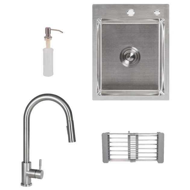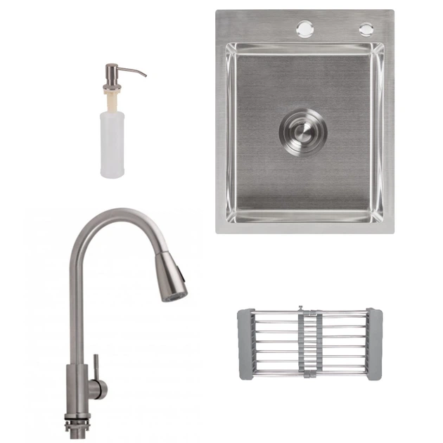 Набір 3 в 1 мийка для кухні інтегрована Lidz Handmade H4050 + Змішувач для кухні Lidz Aria 015F3 + дозатор SET-L2209-8