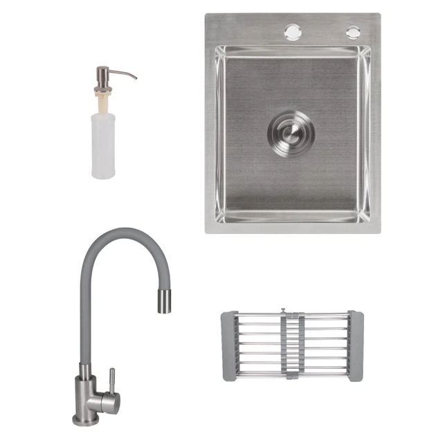 Набір 3 в 1 мийка для кухні інтегрована Lidz Handmade H4050 + Змішувач для кухні Lidz Wind 013F3 + дозатор SET-L2209-1