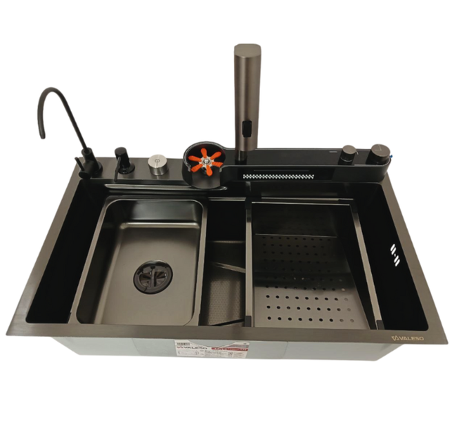 Мийка кухонна PVD чорна Valeso Handmade "Водоспад" (ДЕКОР) 75х45DF