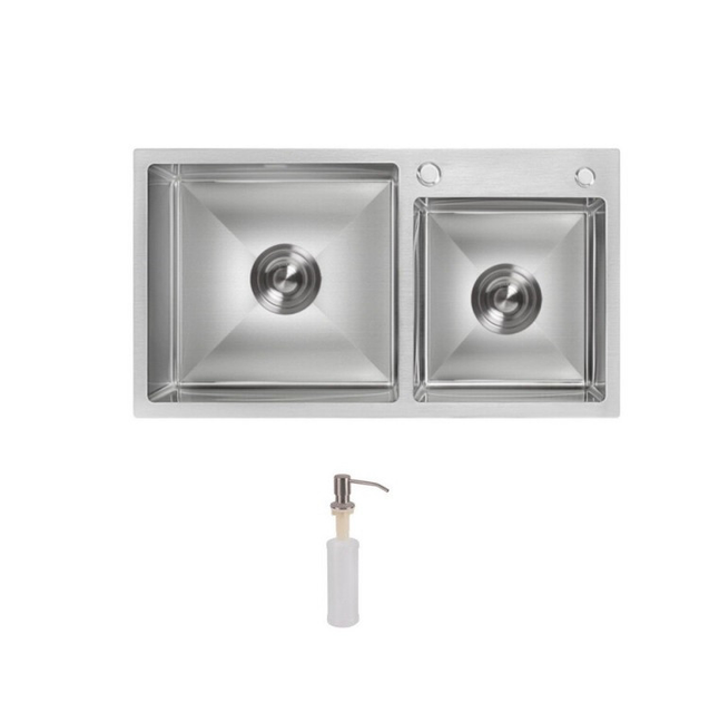 Подвійна мийка з нержавійки Lidz H7843 1.0мм Brush + дозатор для миючого засобу