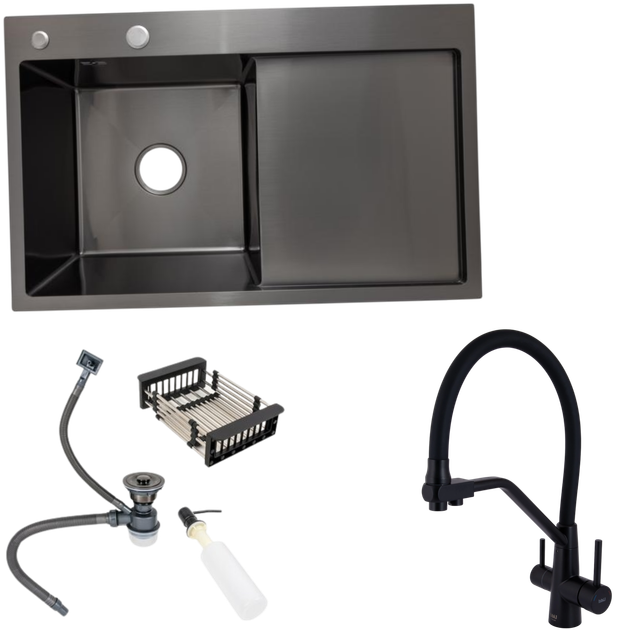 Мийка Lidz H6350R права 3,0/1,0 мм + змішувач для кухні з під'єднанням до фільтра Kroner - ESG03817BLK (45588,27936)