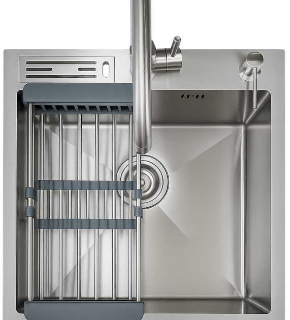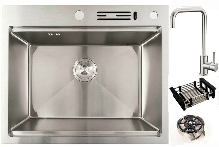 Кухонна мийка AQUAMARIN FLEXA60 Inox+Ополіскувач склянок+Змішувач+Дозатор+Кошик+Тримач для ножів та столових приладів