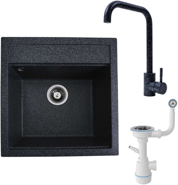 Кухонна мийка AQUAMARIN FLEXA60 Black+Ополіскувач склянок+Змішувач+Дозатор+Кошик+Тримач для ножів та столових приладів