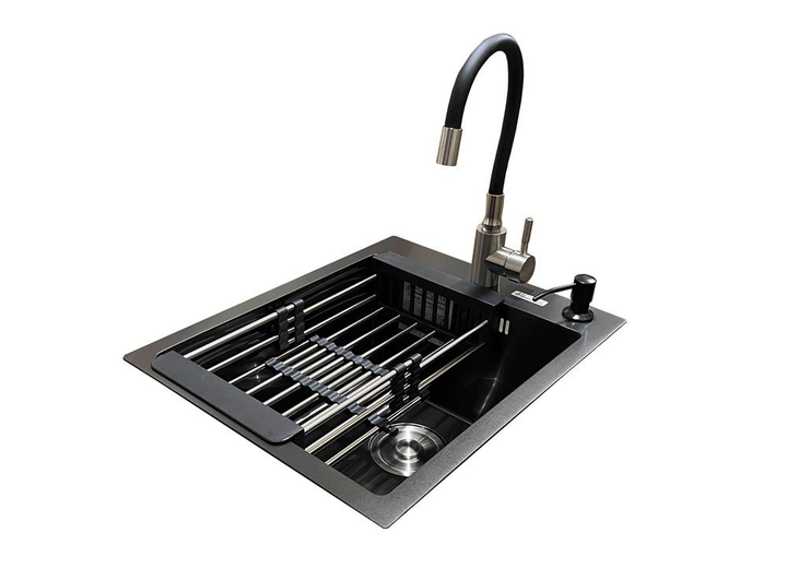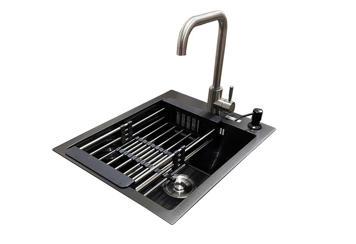 Комплект мийка + змішувач + дозатор Romzha Arta U-350S чорна (B)