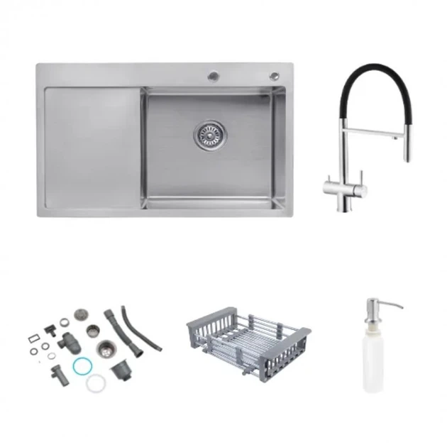Кухонна мийка Monro 78*49 чаша праворуч (дозатор(фільтр)+змішувач+кошик)
