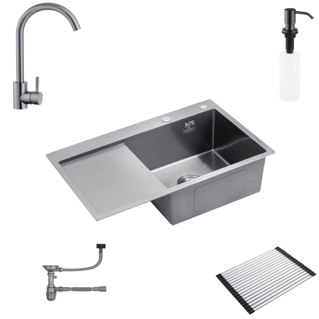 Мийка з нержавіючої сталі AQUAMILL 7849 з PVD покриттям чорна + змішувач KUB + дозатор + решітка