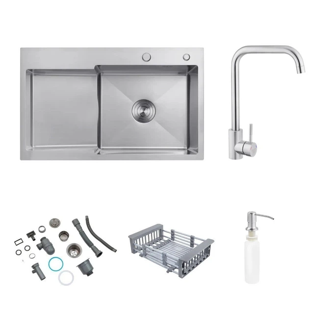 Мийка Kroner 7848LHM ліва + змішувач для кухні Kroner KRP Edelstahl Klassisch — ESG037 (506)