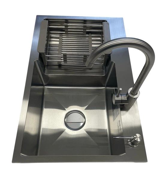 Мийка Kroner 7848RHM + кран із висувною лійкою Kroner + душова Kroner і кран для раковини Kroner — GRP010 (31333,31338,31336