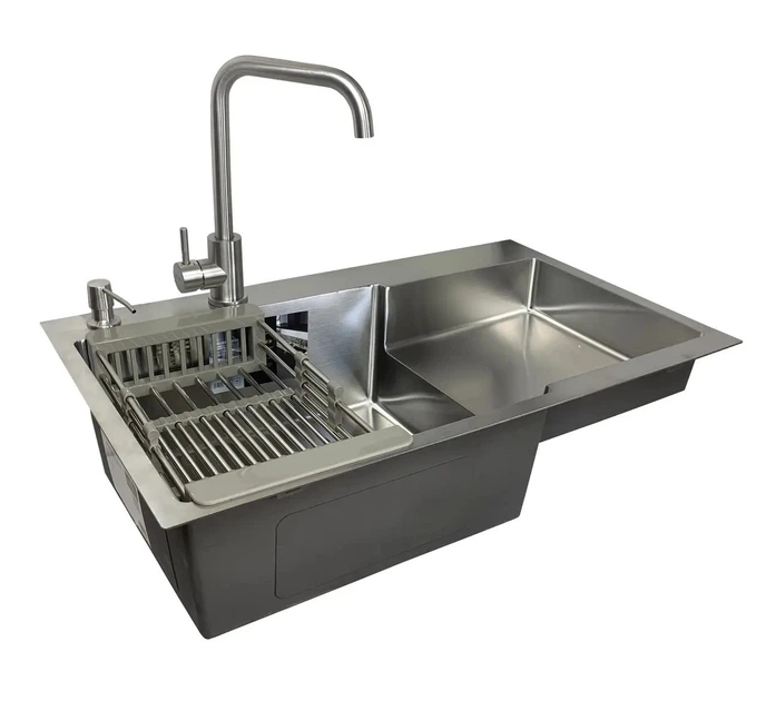 Раковина кухонна з неіржавкої сталі Kroner 7848LHM з краном змішувачем, кошиком і дозатором у комплекті