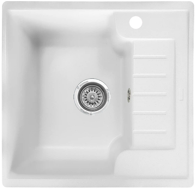 Кухонна мийка, квадратна, кам'яна Valetti 71R 51х49см Біла + сифон