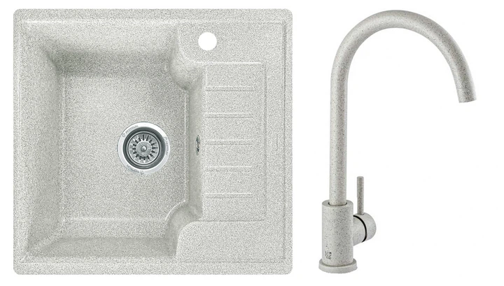 Мийка кухонна, гранітна, квадратна Valetti 71R 51х49см Тера + змішувач