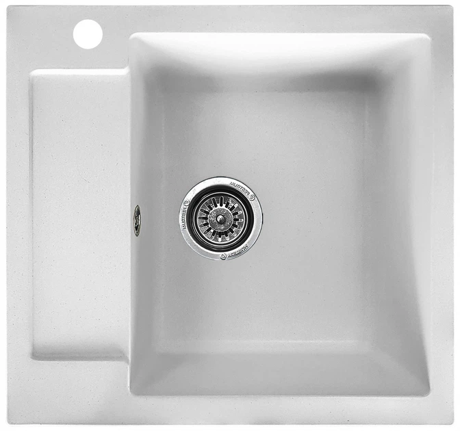 Кухонна мийка, квадратна, кам'яна Valetti 69L 52х49см Біла + сифон