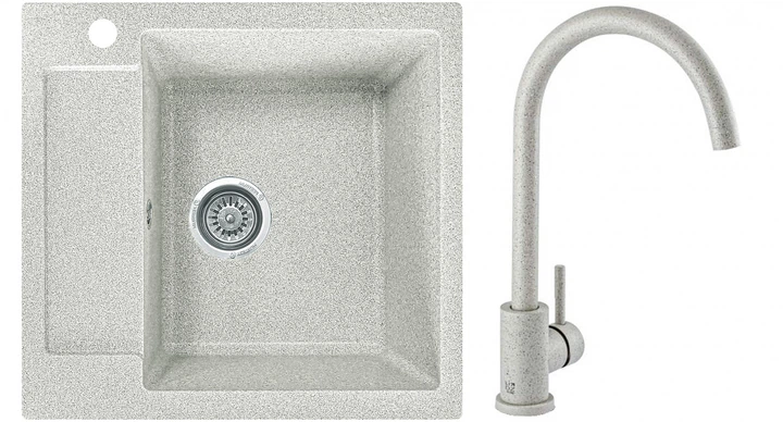 Кухонна мийка, квадратна, кам'яна Valetti 69L 52х49см Сіра + сифон