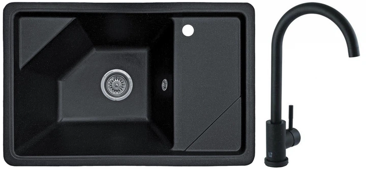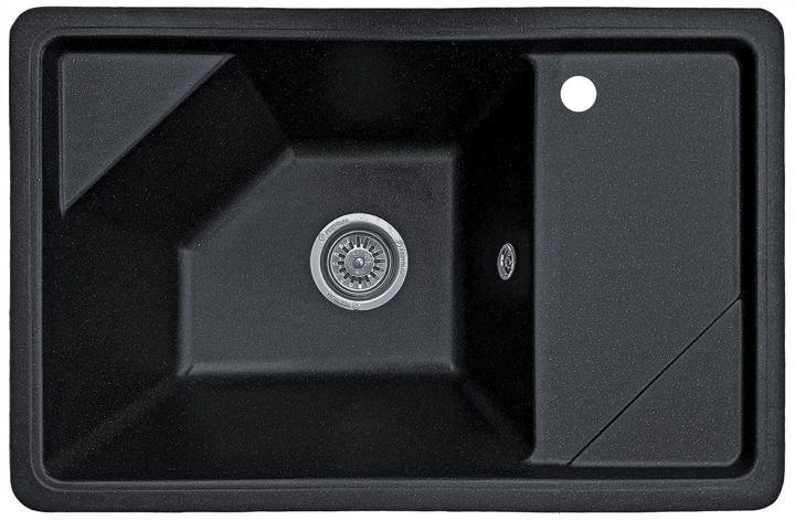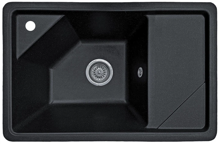 Мийка кухонна, гранітна, прямокутна Valetti 64R 72х46см Чорна + зішувач