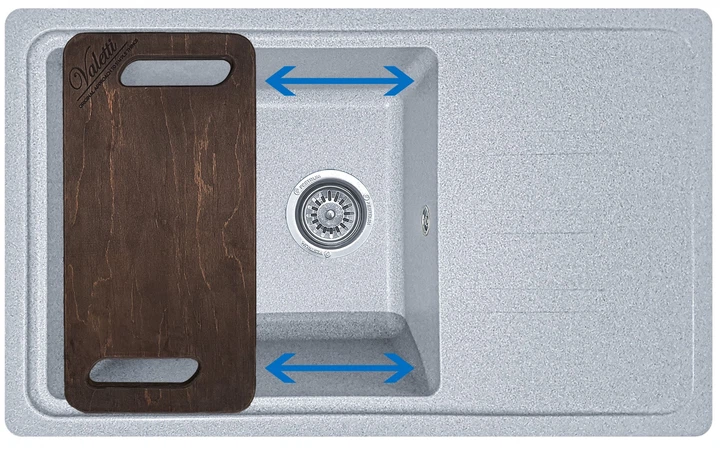 Мийка кухонна, гранітна, прямокутна Valetti 63N 70х43см Сіра + дошка обробна Valetti