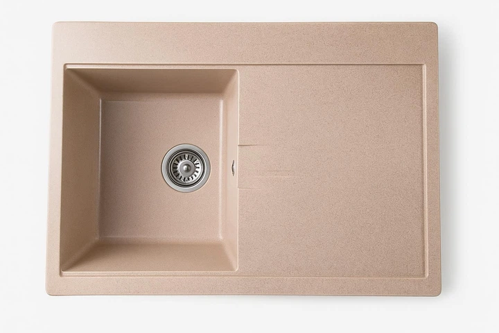 Кам'яна кухонна мийка коричнева, прямокутна гранітна мийка для кухні коричневого кольору зі штучного каменю Akvatika (633335