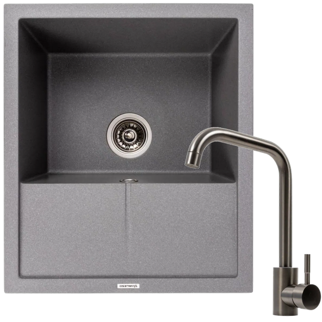 Гранітна кухонна мийка Valeso 5850 REYNA матова з сушкою, сірий мусон
