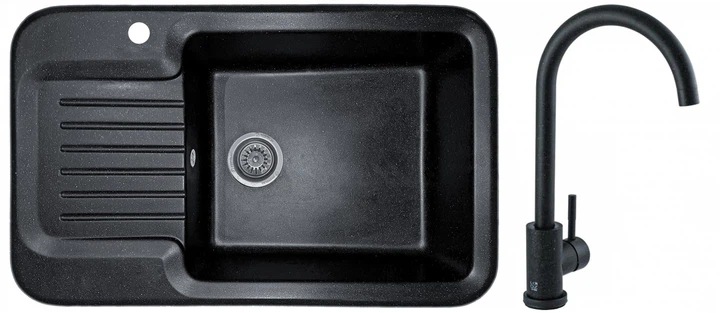 Мийка кухонна, гранітна, прямокутна Valetti 55L 81х51см Чорна + змішувач