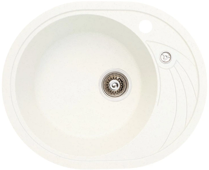 Кам'яна кухонна мийка біла, овальна гранітна мийка для кухні білого кольору зі штучного каменю Akvatika (5160004)