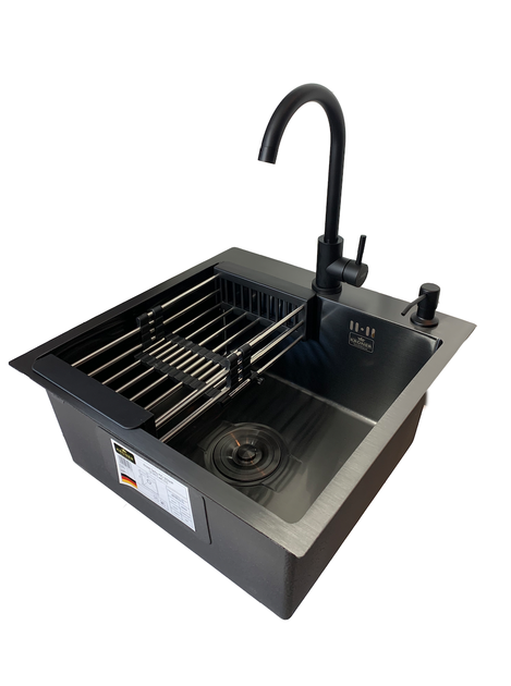 Мийка кухонна Monro 50*50 (2.5\0.5) (см) у чорному PVD + змішувач + дозатор + кошик