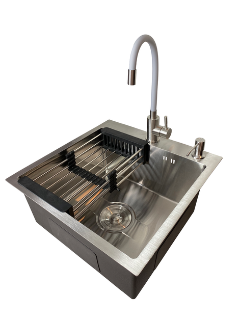 Мийка кухона Kroner 50*50 (3.0\1.0) (см) + Змішувач + дозатор + кошик