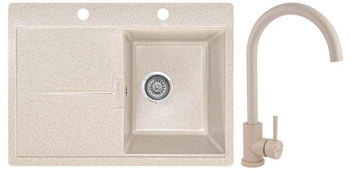 Мийка кухонна, гранітна, прямокутна Valetti 15CR 670х495мм Бежева + змішувач