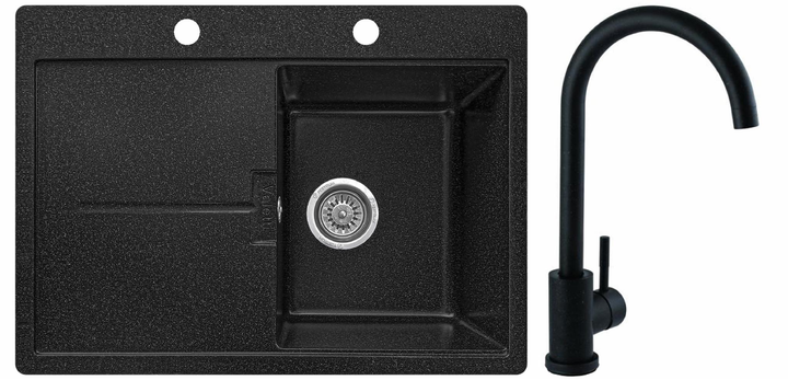 Мийка кухонна, гранітна, прямокутна Valetti 15CR 670х495мм Чорна + змішувач