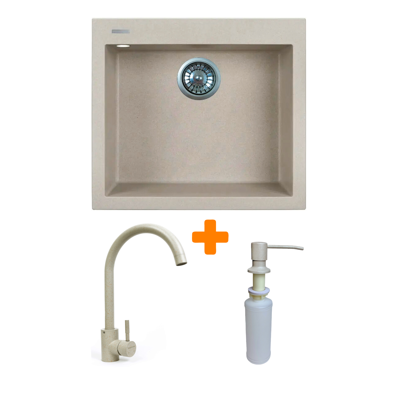 Adamant Набір кухонний Univer, штучний камінь, квадрат, без крила, 560х500х200мм, чаша - 1, врізна, Avena + змішувач E-48242