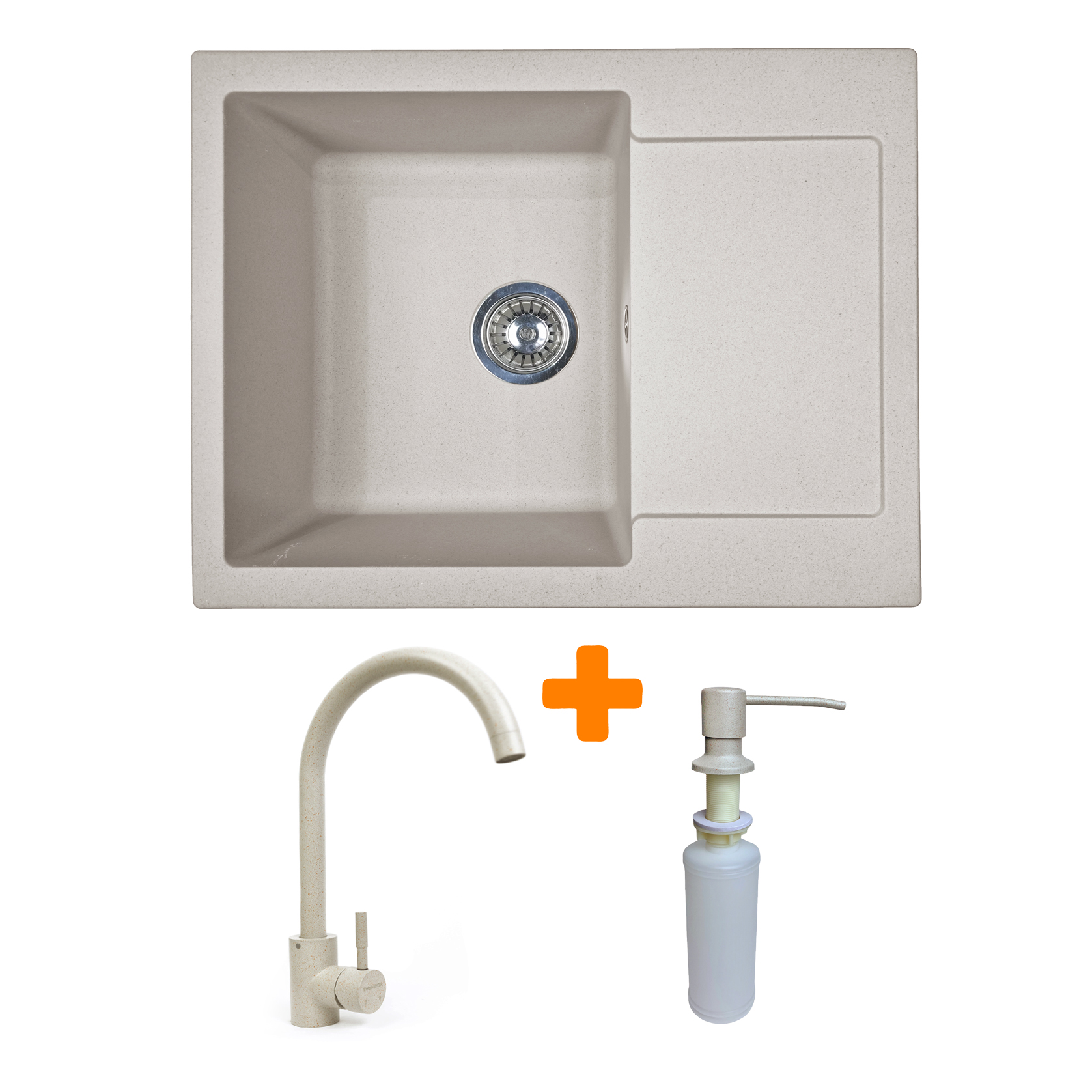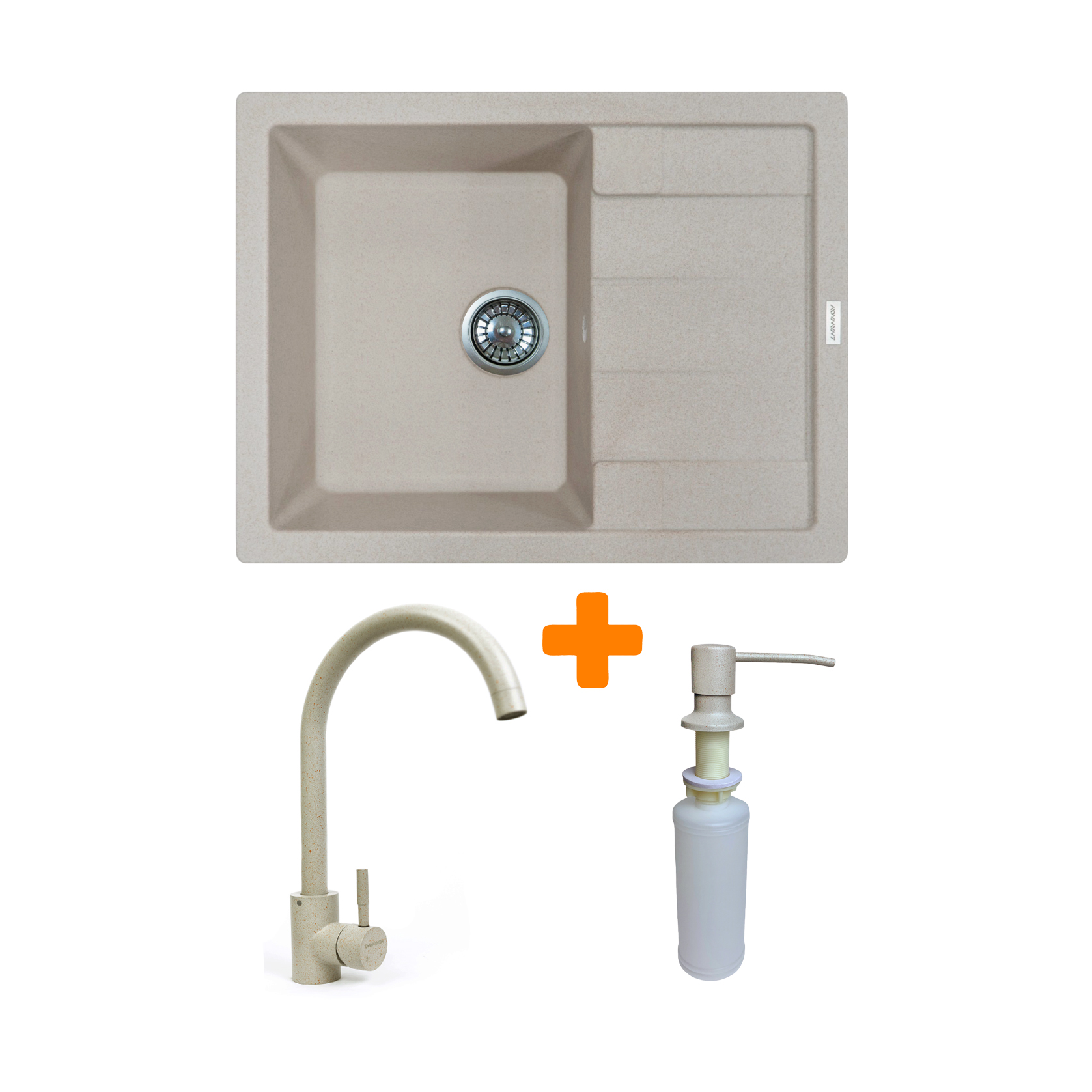 Adamant Набір кухонний Anila, штучний камінь, прямокут., з крилом, 645х495х200мм, чаша - 1, врізна, Avena + змішувач та доза