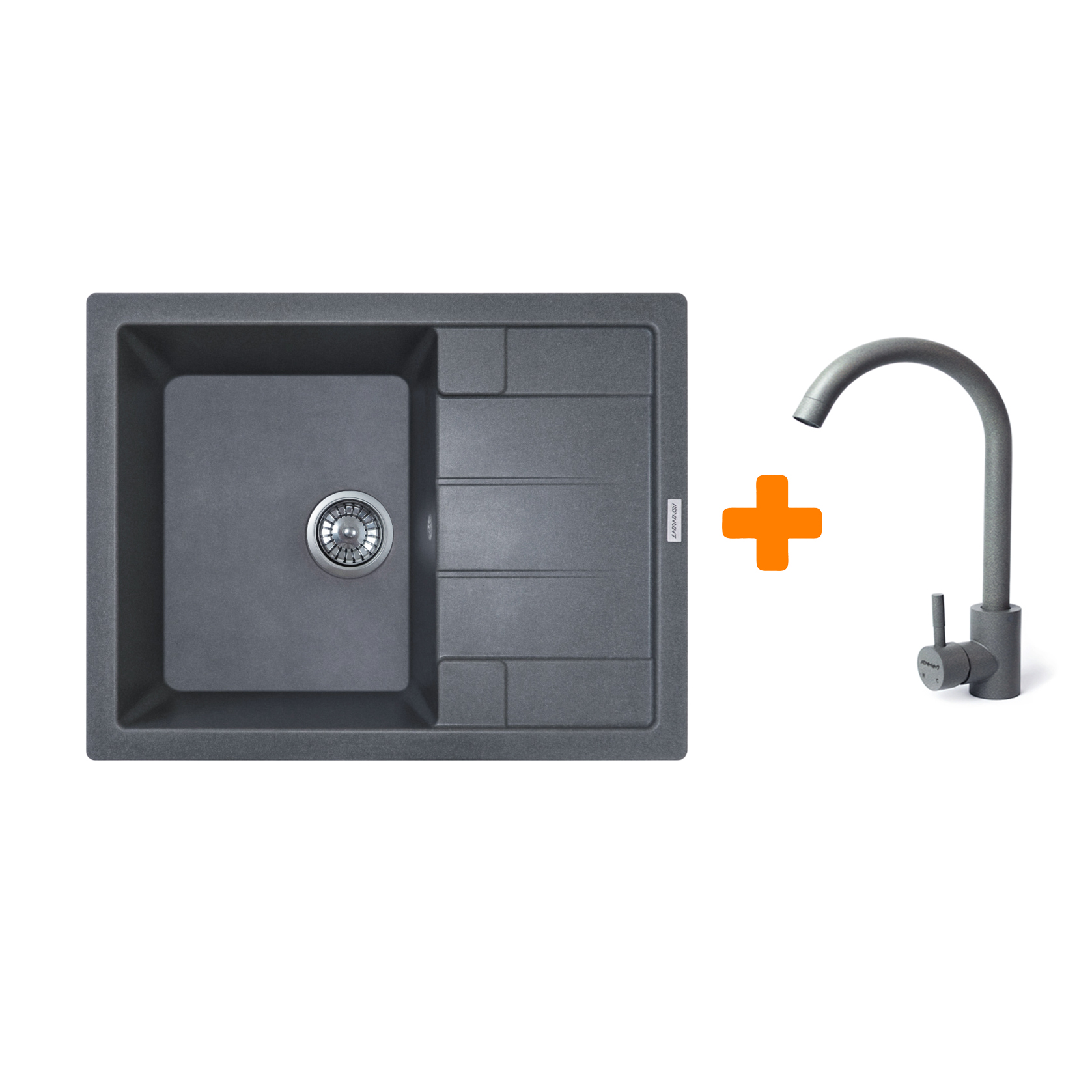 Adamant Набір кухонний Minimal, штучний камінь, прямокут., з крилом, 615х495х200мм, чаша - 1, врізна, сірий + змішувач та до