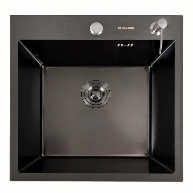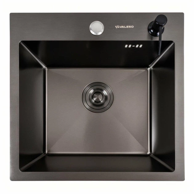 Кухонна мийка з нержавіючої сталі Valeso з отвором для змішувача та дозатора чорного кольору Handmade 50*50 PVD