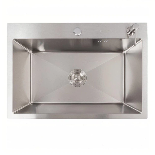 Кухонна мийка з нержавіючої сталі VALESO з отвором для змішувача та дозатора Handmade 65*45