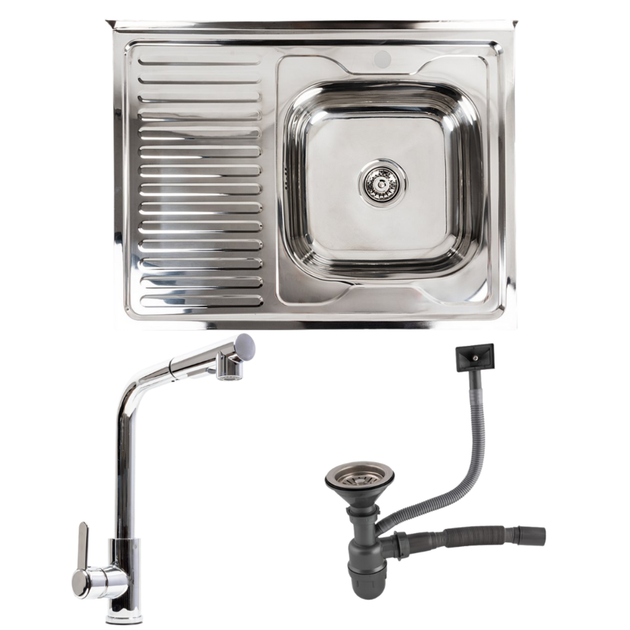 Нержавіюча мийка із змішувачем Valeso з бічним крилом на одну квадратну чашу 8060R