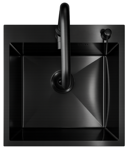 Кухонна мийка AQUAMARIN VLS51 Black (Матова)+Змішувач+Дозатор+Сифон
