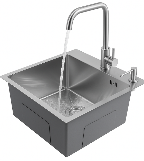 Кухонна мийка AQUAMARIN VLS 550 DurAlum (Матова)+Змішувач+Дозатор+Сифон+Коврик для посуду
