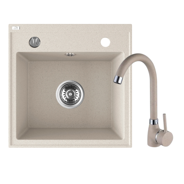 Гранітна мийка для кухні AquaMill TORONTO бежева + змішувач