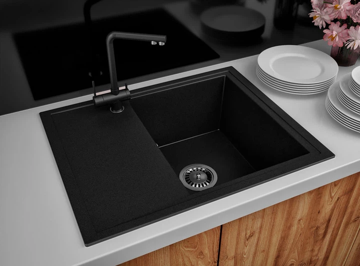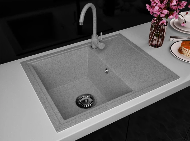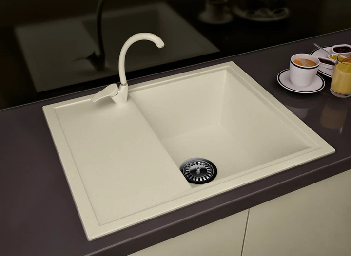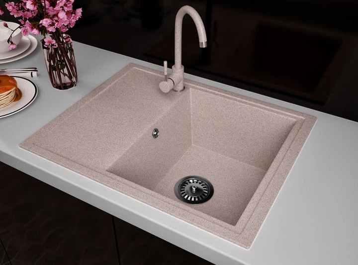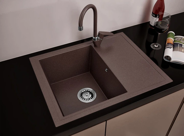 Кам'яна кухонна мийка Akvatika тера, прямокутна гранітна мийка для кухні теракотового кольору зі штучного каменю Akvatika (3