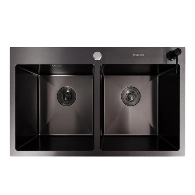 Кухонна мийка PVD чорна 78*48 VALESO Handmade на дві чаші (3.0/0.8)
