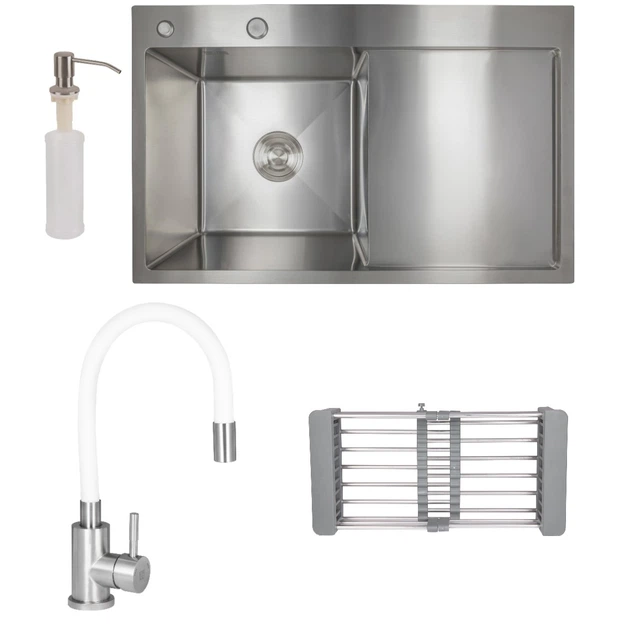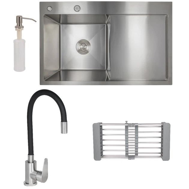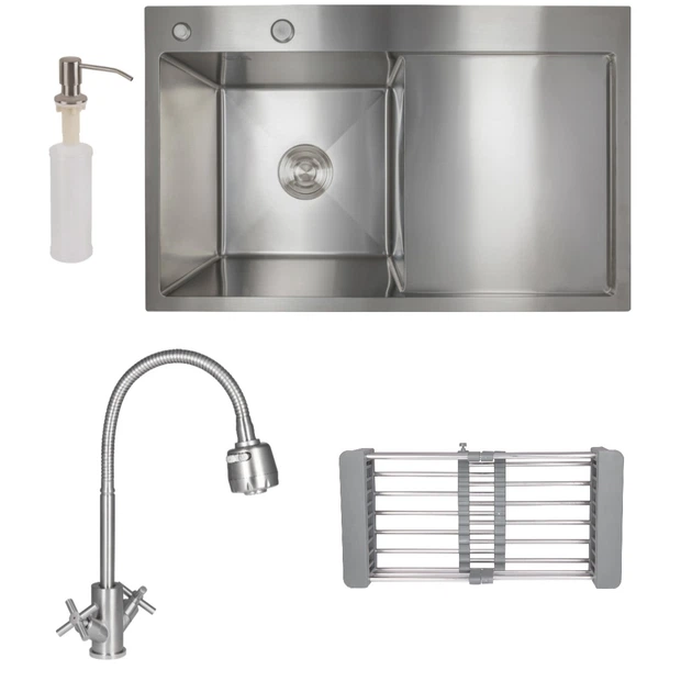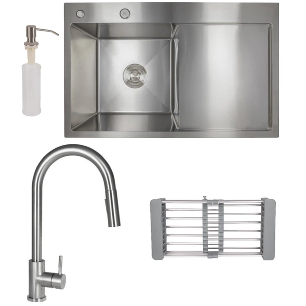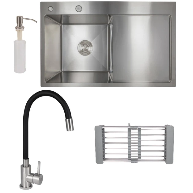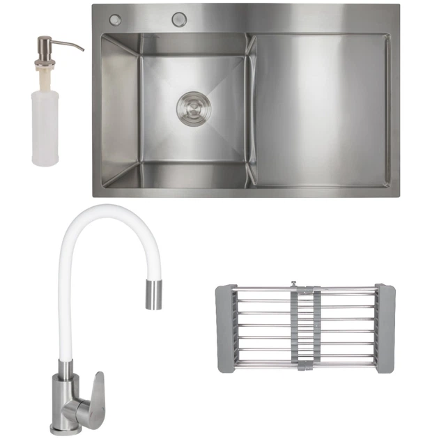Набір 3 в 1 мийка для кухні інтегрована Lidz Handmade H7849R крил праворуч + Змішувач для кухні Lidz Wind 013F + дозатор SET