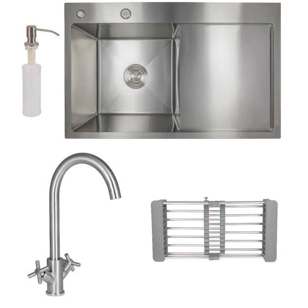 Набір 3 в 1 мийка для кухні інтегрована Lidz Handmade H7849R крил праворуч + Змішувач для кухні Lidz Aria 015FL2 + дозатор S