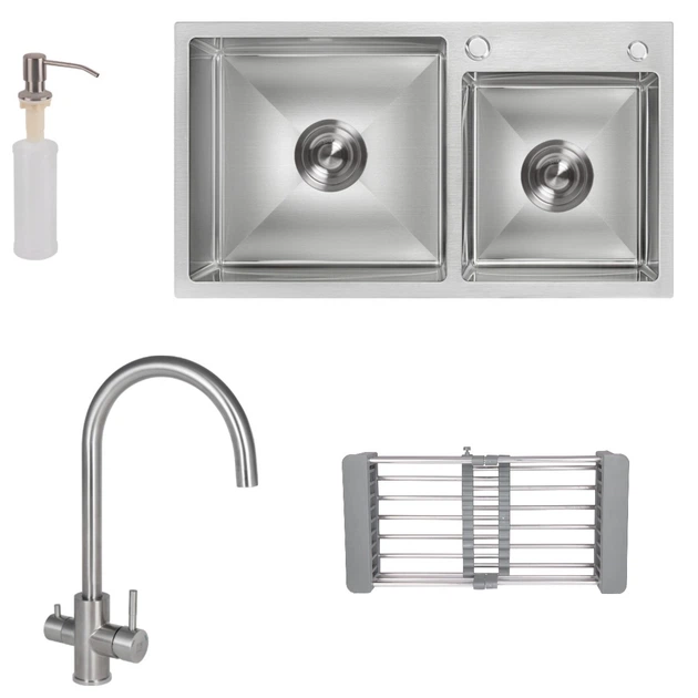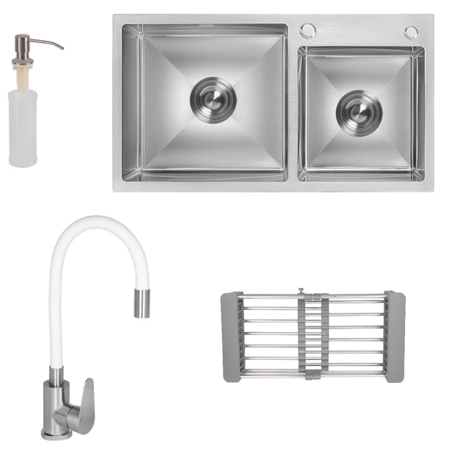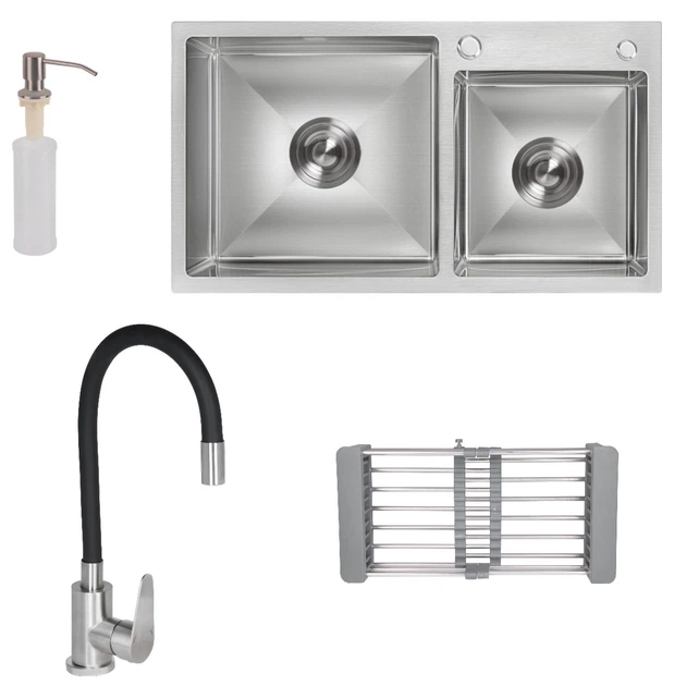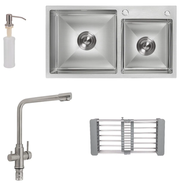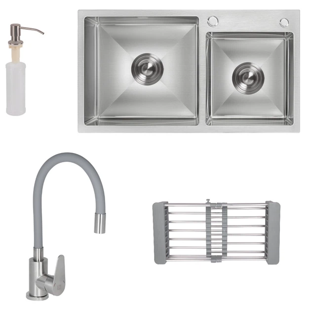 Набір 3 в 1 мийка для кухні із двома чашами інтегрована Lidz Handmade H7843 + Змішувач для кухні Lidz Aria 015FL1 + дозатор