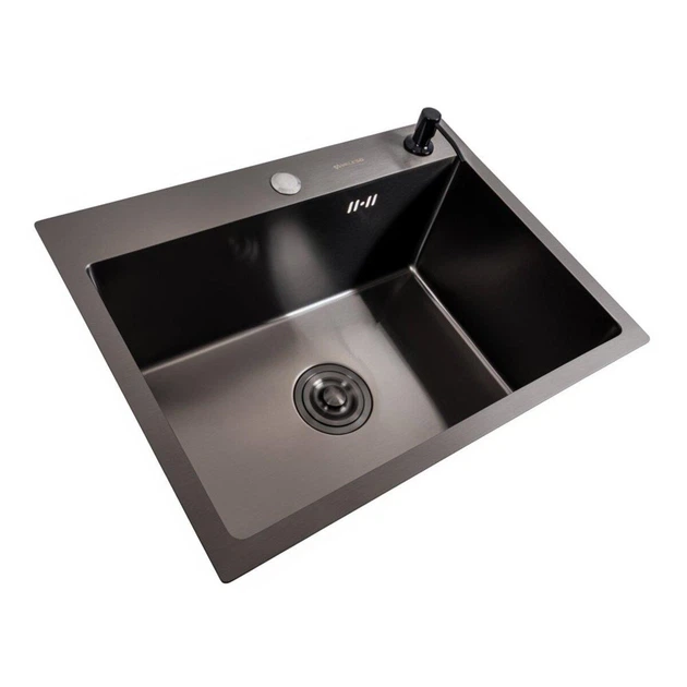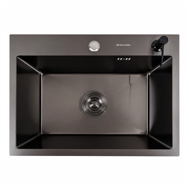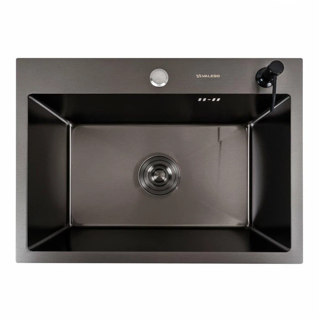 Кухонна мийка 58*43 PVD чорна Valeso Handmade (сифон круглий, 3,0/0,8)