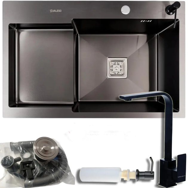Кухонна мийка 45*45 Valeso Handmade PVD чорна (сифон крулий 3,0/0,8)