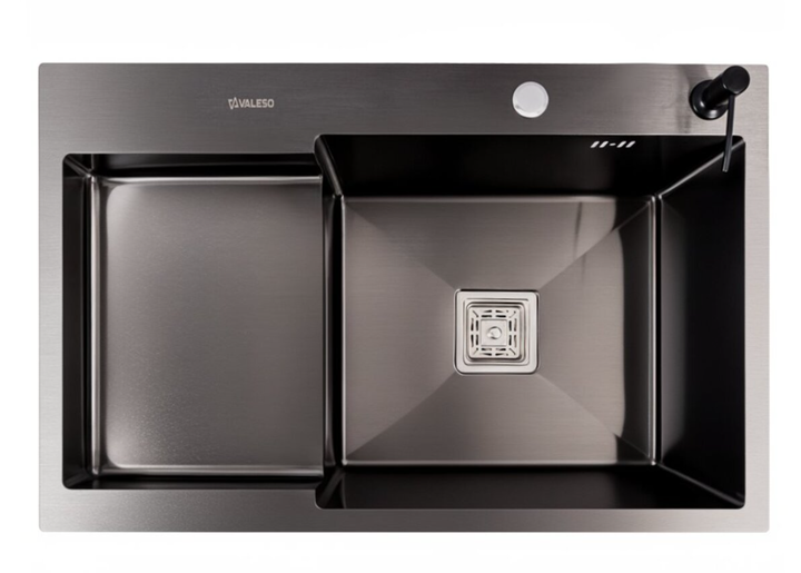Кухонна мийка нержавійка CM 78*50C R VALESO Handmade PVD чорна з поглибленою полицею (3,0/0,8)