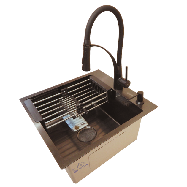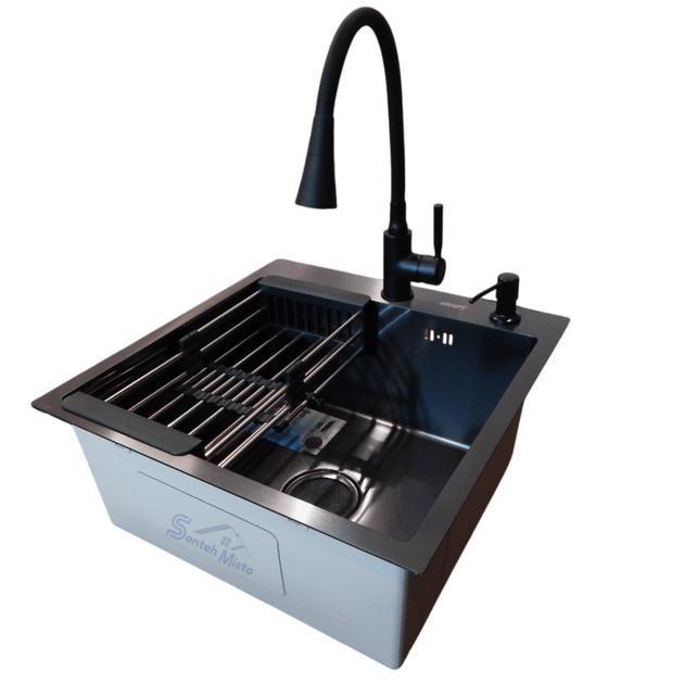 Комплект кухонної мийки KRAFT Handmade PVD чорна HS 5050 (3.0/1.0 мм)