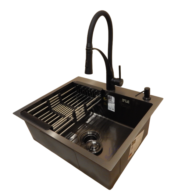Комплект кухонної мийки KRAFT Handmade PVD чорна HS60*45 (3.0/1.0 мм)