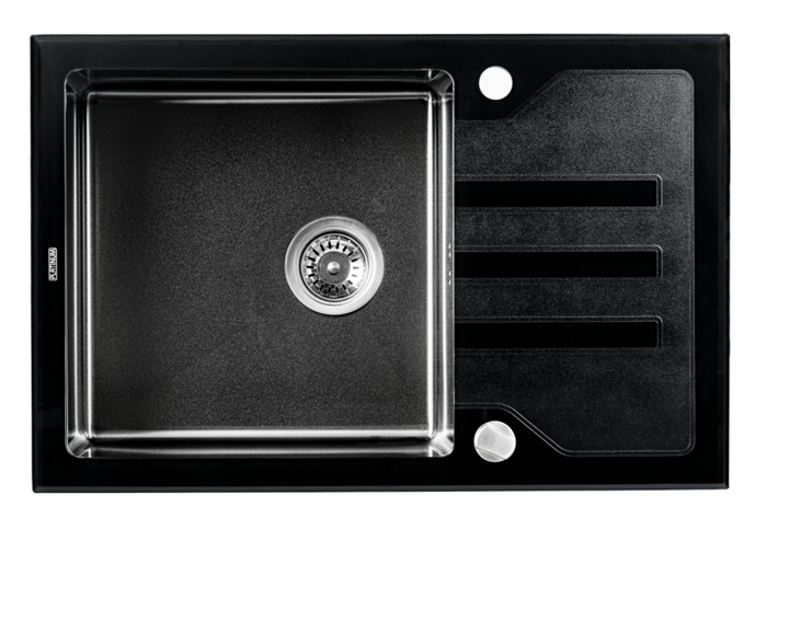 Мийка кухонна Platinum Handmade 78*51 (см) у чорному PVD + скляна поверхня
