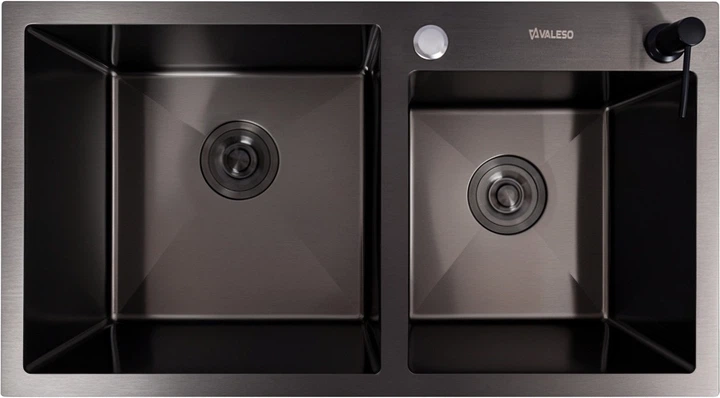 Кухонна мийка VALESO Handmade 78x43 см PVD чорна з 2-ма чашами з сифоном