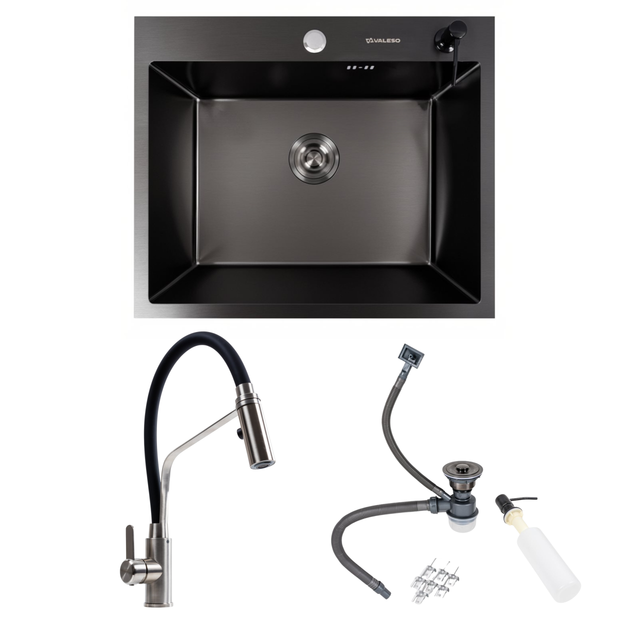 Комплект: Кухонна мийка VALESO Handmade 60*50 PVD чорна + Змішувач KN36